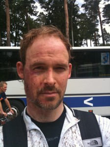 Hallingsokken innledet det hele med et stup over styret etter vel 1 mil. Heldigvis var dette på et av de mange gresspartiene, for det første som traff bakken var ansiktet. Tilsynelatende gikk det bra med Sokken, men halve ansiktet var rødt og begynte gradvis å bli blått på bussturen hjem. Det er i skrivende stund usikkert hvordan utfallet av uhellet ble tatt i mot på hjemmebane. Vi venter i spenning. Heldigvis gikk det bra med sykkelen.